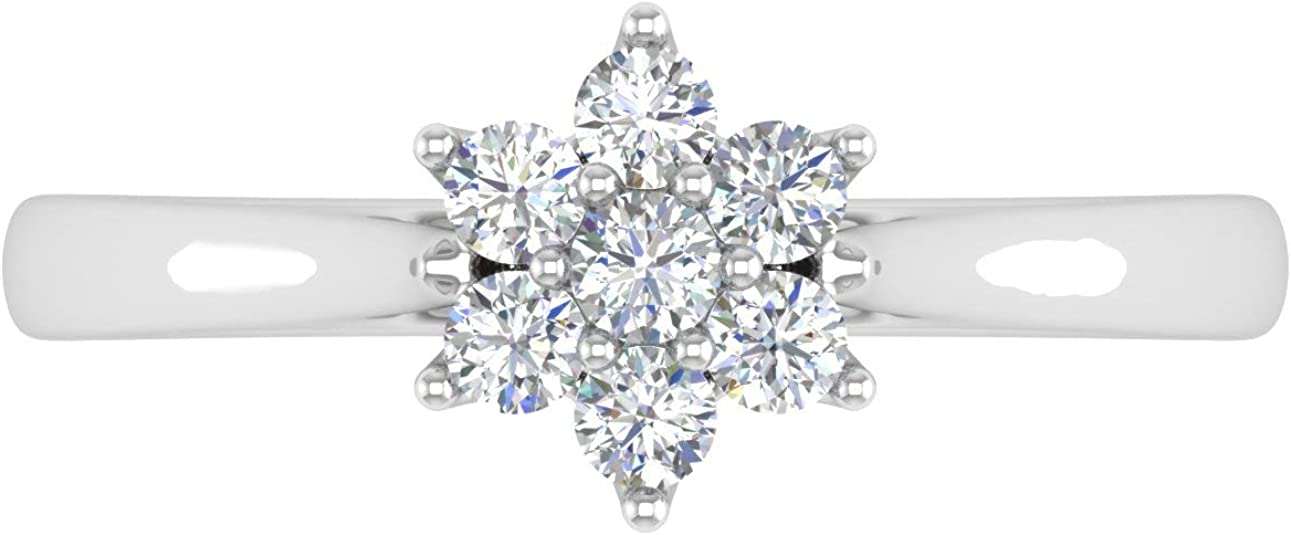 1/4 Carat Flower Shaped Cluster Prong Set Diamond Ring Band in 10K Solid Gold