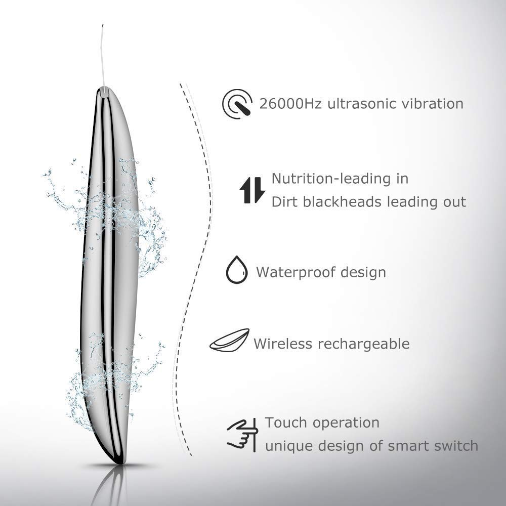 • SAFE ULTRASONIC TECHNOLOGY - Professional Skin Scrubber Spatula works through "real" ultrasonic vibration up to 26000Hz efficiently cleanse by shattering impurities in the pores and then discharged without hurt, force clogged sebum and debris out of the pores clearing out blackheads. Extracting blackheads with hands can create large pores and skin inflammation; Nose sticky patches can cause injury to the skin; Abrasive exfoliating products tend to cause skin sensitivity or dependence.