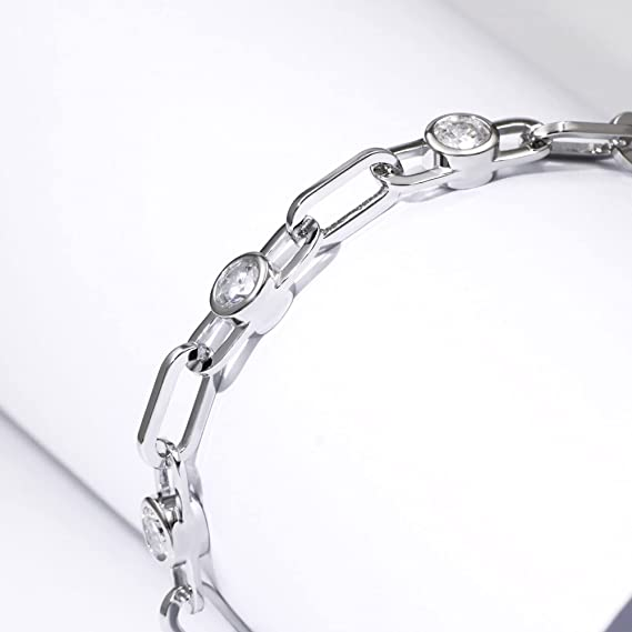 Moissanite Silver Bracelets for Women I 3Ctw DF VVS Emerald Cut Moissanite Diamonds I 18K White Gold Plated 6mm Cuban Link Chain Charm Bracelet I 6.5-7.5 Inch