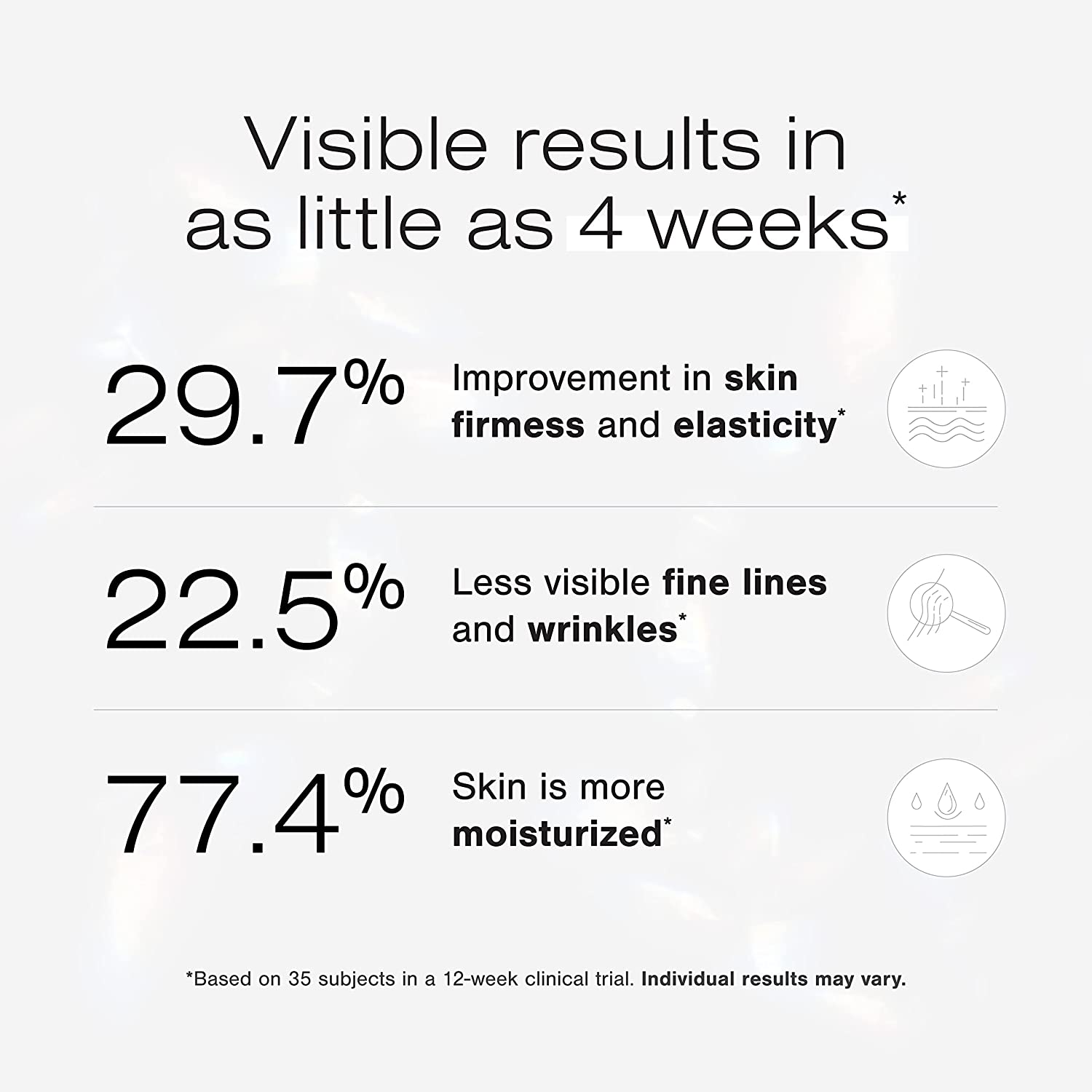 • FINE LINES AND WRINKLES: This antioxidant-rich serum is clinically proven to minimize the signs of aging, while firming, increasing elasticity, reducing the appearance of fine lines and wrinkles and improving skin tone and texture.