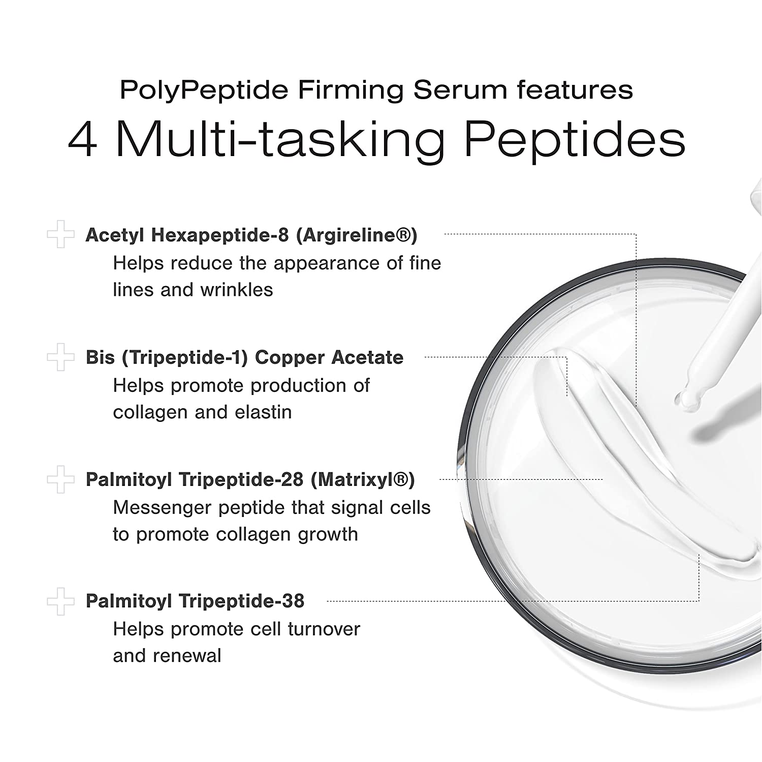 • PROVEN RESULTS: Our satisfied customers report improved skin firmness, moisturization and the reduction of fine lines and wrinkles. These results are based on a single-blinded 12-week clinical study of 35 subjects that applied PolyPeptide Firming Serum twice-daily. 10/15 /21 Safety Test (RIPT) and 10/29/21 for Efficacy Test.