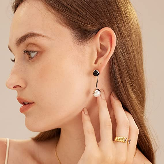 • GOLD-PLATED: This drop earring showcase perfectly rounded pearls and agate, which are joined together 18k white gold links for an elegant style.