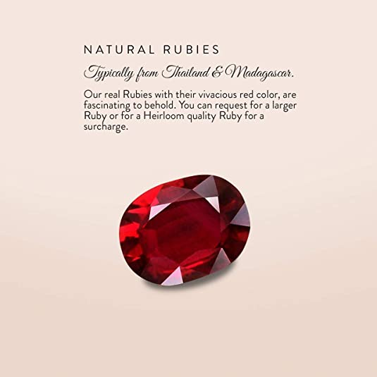 100% Genuine, Conflict Free Diamonds and Gemstones. Made with 3 gemstones in a Prong Setting. Ruby is July's Birthstone.